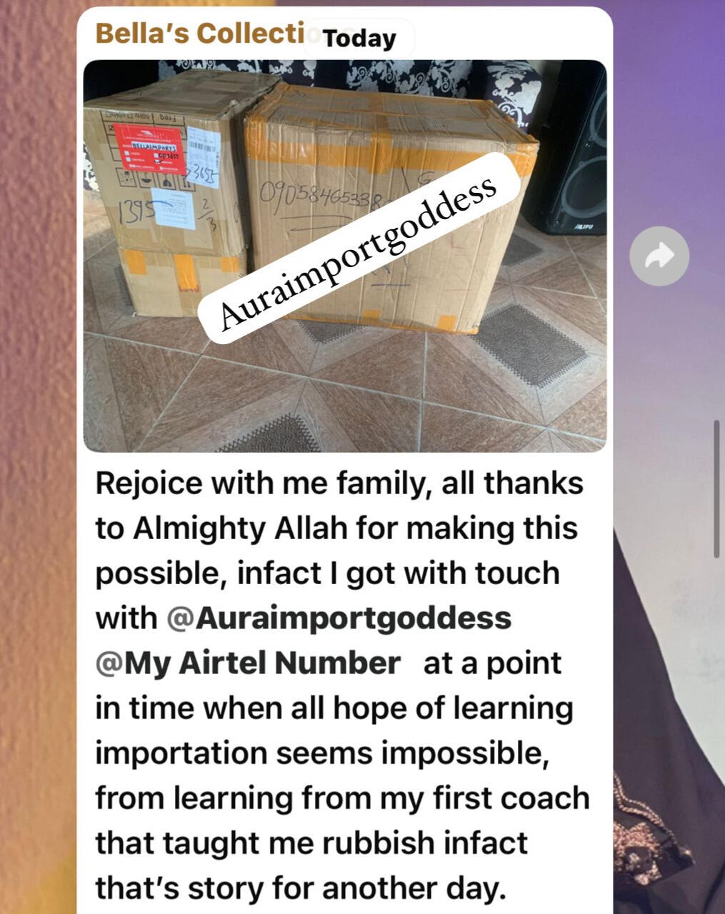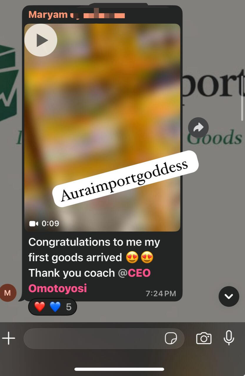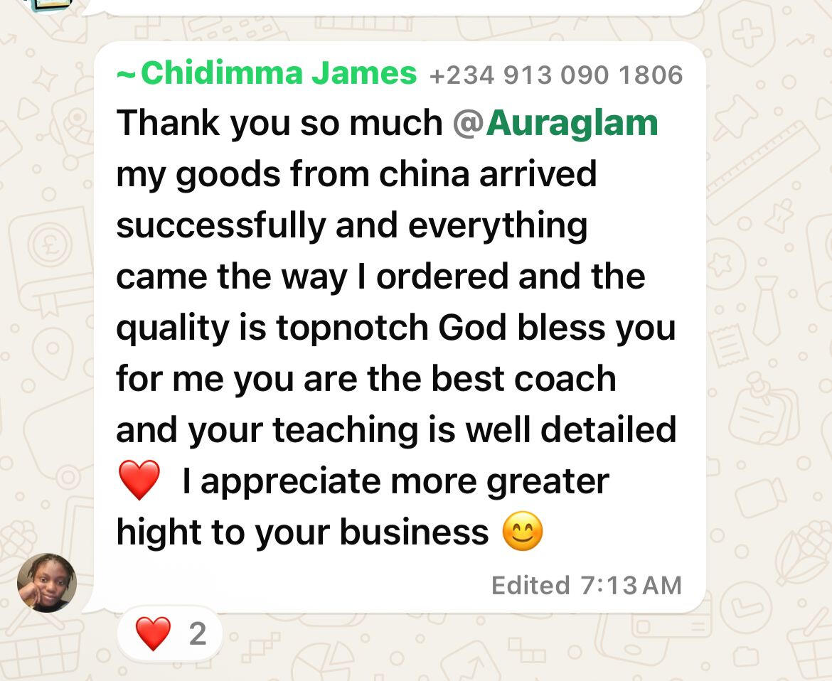 Another of my students MARYAM after paying for different importation classes she was able to import her first goods directly from china manufacturers after attending my class